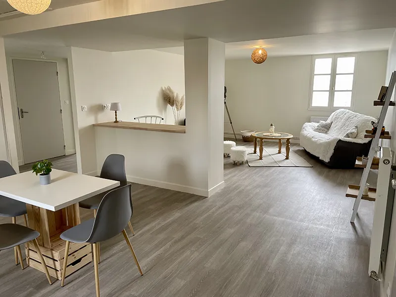Les grandes baies vitrées laissent entrer la lumière, et la configuration peut être aménagée selon vos envies.