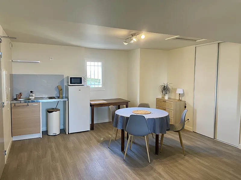 Pour les groupes ayant besoin d’un espace à part, un appartement indépendant de 80 m² est à disposition. Il comprend deux chambres, un salon aménagé, une kitchenette équipée, et une salle d’eau privative.